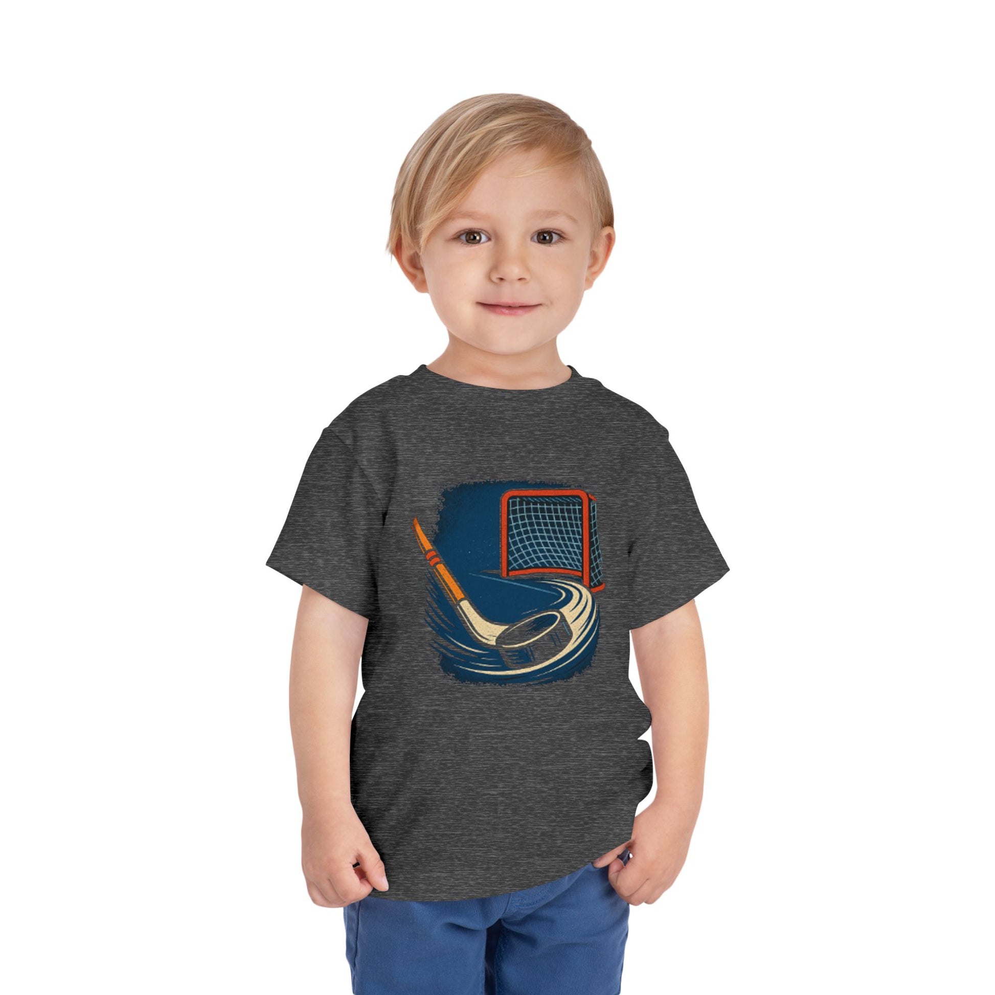 This short sleeve toddler tee radiates playful spirit and determination, making it a perfect addition to any young athlete's wardrobe. Featuring a striking hockey graphic, it sparks imagination and joy. Ideal for casual outings, playdates, or lounging at home, this tee embodies comfort and style for every occasion. Perfect for birthdays, family reunions, and animal-themed parties, or simply as a fun everyday outfit. Young ones who love sports and adventure will find this shirt irresistible!