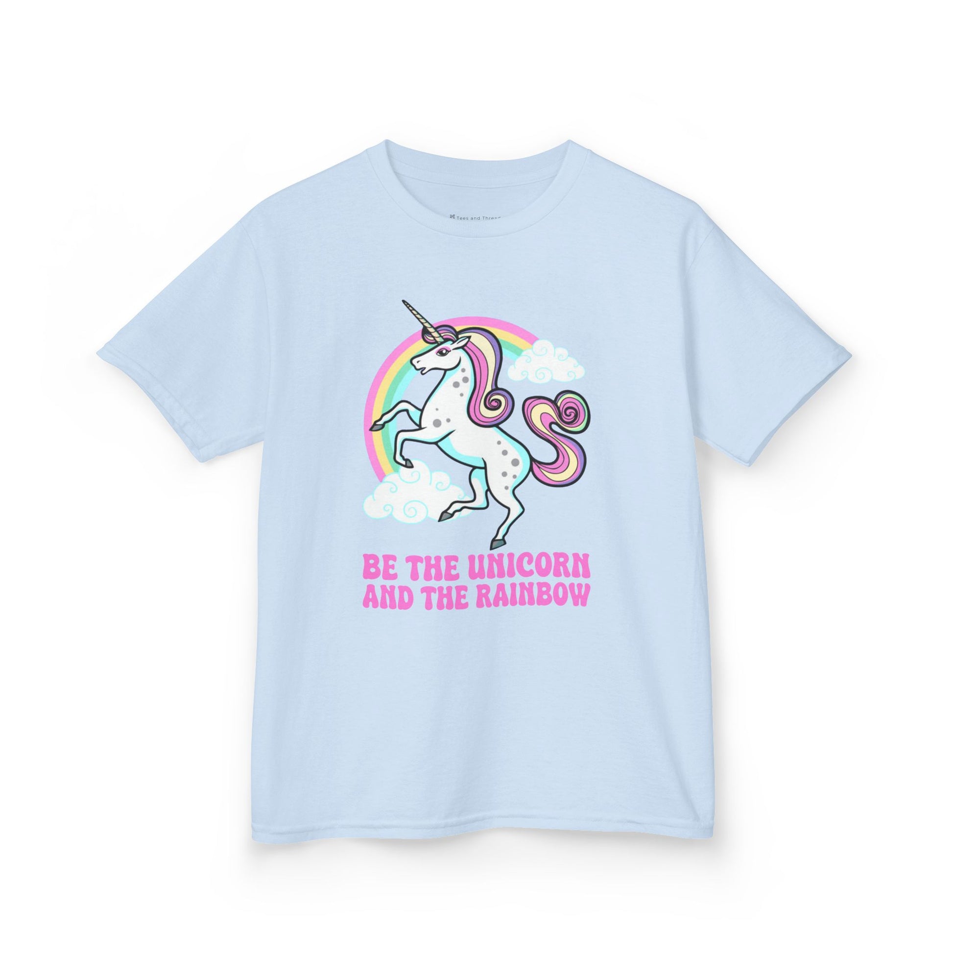 Sparkle, shine, and stand out from the crowd with this magical “Be the Unicorn and the Rainbow” t-shirt! Bursting with color and positivity, it’s perfect for every dreamer who believes in spreading joy wherever she goes. Featuring an adorable unicorn surrounded by a swirl of rainbow hues, this tee reminds kids to be kind, confident, and full of imagination — just like their favorite mythical creature.